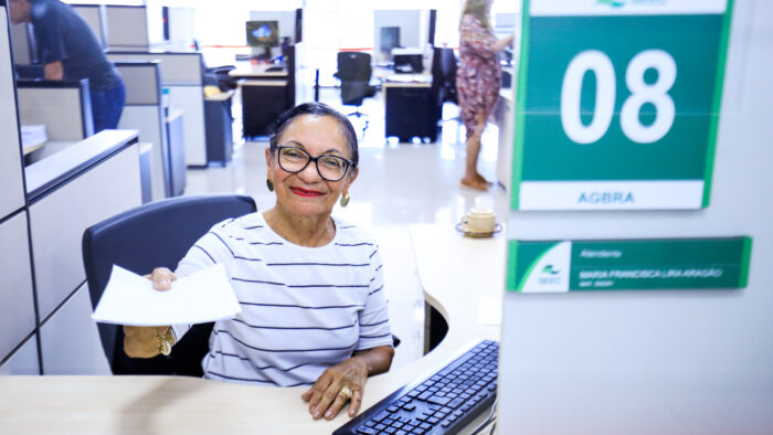 Mesmo já tendo direito à aposentadoria pelo tempo de serviço, Francisca diz que ainda não é hora de parar, porque ama atender o público. Atualmente, ela trabalha no atendimento da Agência da Receita do DF, na Asa Norte.