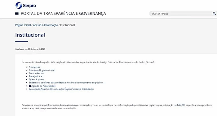 Desde o ano passado a empresa vinha impedindo o acesso de qualquer internauta saber das atividades dos diretores. Na página das informações institucionais do Serpro, a agenda da diretoria continua sendo mantida com um cadeado, indicando que era área restrita e só pode ter acesso à rede interna do Serpro quem tiver senha concedida pela estatal, ou seja: somente os funcionários.