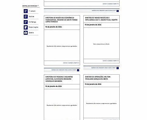 A segunda “pegadinha” vem ao acessar a agenda. Todos os dias as atividades da diretoria vêm com a informação “Atualmente não existem compromissos agendados”. Ninguém fica sabendo diariamente o que fazem os diretores, se olharem para a página principal.
