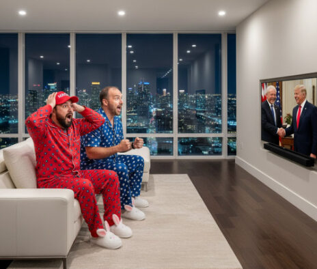 Em Kuala Lumpur, Malásia, 4h40 da madrugada, horário de Brasília. Em Washington DC, 3h40. Dois brasileiros, como lobos solitários, fizeram questão de dormir um na casa do outro, na capital norte-americana, para assistir juntinhos de madrugada e uivar ao que esperavam ser um fiasco, uma espécie de Volodymyr Zelensky 2, a Missão – com Donald Trump humilhando Lula, como fez com o presidente ucraniano, que, em 28 de fevereiro, no Salão Oval, terminaram o encontro de forma desastrosa e conflituosa, ao vivo. A ideia das pantufas de coelhinho foram do dono da casa, Paulo Figueiredo, “para dar sorte”, que tinha um par sobrando sob medida para o irmão de golpe Eduardo Bolsonaro. Foi para isso que eles “trabalharam”, como lobistas frilas das ambições da família miliciana mesmo contra os interesses do próprio país. A imagem fictícia acima – quem sabe não aconteceu? – retrata o desespero da dupla de excluídos Eduardo e Paulo, homens de bastidor, conspiradores de Washington, resignados à condição de platéia virtual do sucesso diplomático de Brasília e Washington.