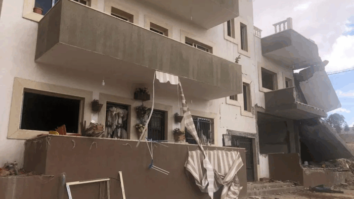 Enquanto mostrava as imagens chocantes dos danos, ao lado da esposa e da sogra, Matar apontou para o que restou de seu quarto e de seu apartamento. Nos registros em vídeo, a devastação é completa.