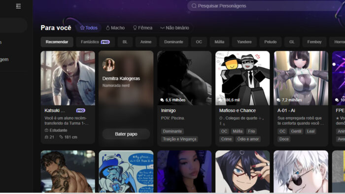 Sites de “amigos artificiais” também ganham espaço, inclusive criados por big techs, como Meta e Google, que passaram a criar personagens por IA para fazer companhia e simular relacionamentos. Líder do segmento, o Character.AI já está entre os cem sites mais buscados no Brasil. O também popular Polybuzz cobra R$ 50 ao mês para oferecer acesso a personagens que flertam mais — com uso ilimitado de voz, já está entre os 30 aplicativos de entretenimento mais rentáveis dos Estados Unidos e do Brasil, de acordo com o monitor de audiência em celulares Sensor Tower. Vídeos no TikTok mostram como jovens engatam desde amizades até relacionamentos amorosos com os personagens, que também podem ter aparência e personalidade definidos por instruções do usuário. Especialistas alertam para os riscos de desenvolver sentimentos por bots de IA.